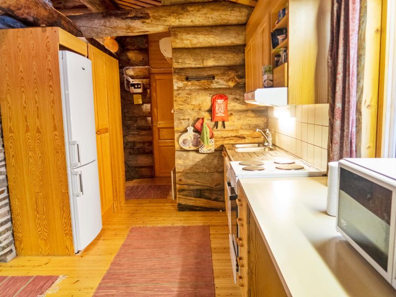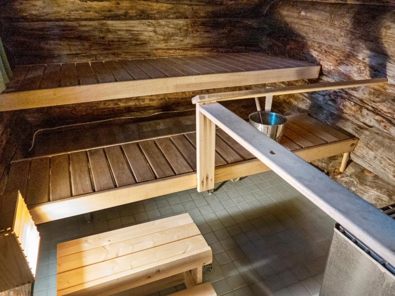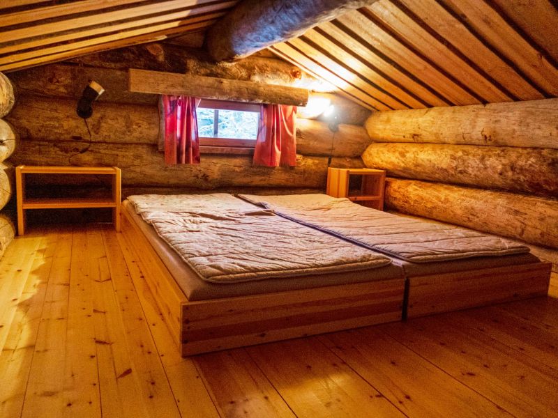- tupakeittiö, makuuhuone parisängyllä, 2 muuta makuuhuonetta, joissa molemmissa 2 kerrossänkyä, makuuparvi jossa 3 patjaa (hyvin jyrkät tikkaat), sauna (sähkökiuas), pesuhuone, pukuhuone, 2 erillistä wc:tä, avokuisti.